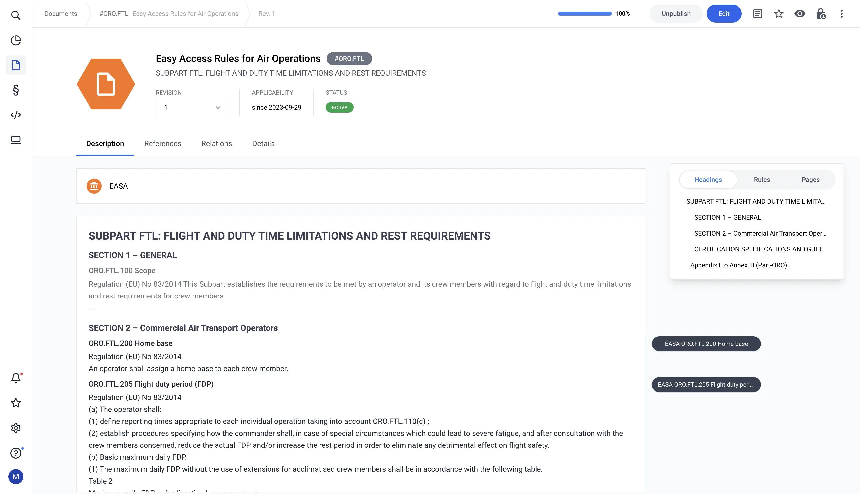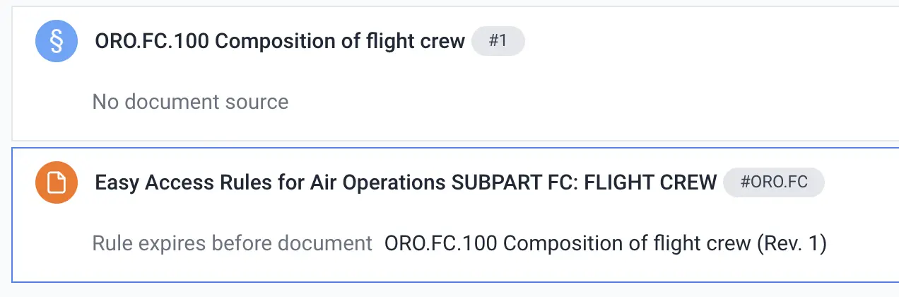 If, for example, the content of a specification changes, a new document revision is created with a new validity period. All rules that are no longer linked after the specification has been changed receive a warning that the source document ends before the rule.